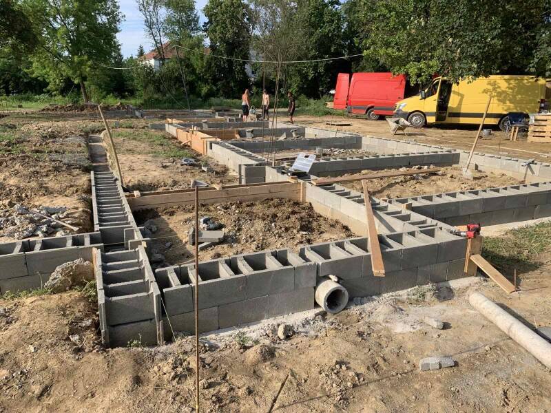 Momenteel worden de tussenmuren op de bovenverdieping opgebouwd en de vloerverwarming aangelegd.